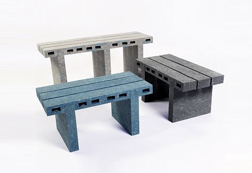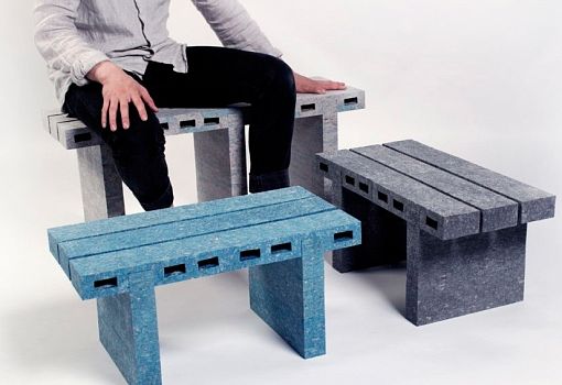 Корейско-новозеландский художник Вуджай Ли (Woojai Lee) исследует возможности переработки бумаги более устойчивыми способами. Бумага в разных видах – это один из наиболее производимых и перерабатываемых в мире материалов. Переработка бумаги зачастую оказывается нерентабельной, так как с каждым циклом ее качество ухудшается. Вуджай Ли решил найти новые пути повторного использования бумажного продукта в своей концепции «paperbricks». Суть ее состоит в создании «кирпичиков» из переработанных газет. Газетную массу измельчают в целлюлозу и смешивают с клеем, а затем формуют в бруски. В результате появляются легкие и достаточно прочные блоки с поверхностью, напоминающей мрамор, но сохраняющей нежную текстуру бумаги. Из своих «бумагокирпичей» художник  создал серию мебели, состоящую из скамейки и двух кофейных столиков.