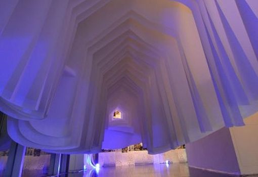 Инсталляция бюро Horiuchi Architecture, созданная из подвешенных в воздухе легких отрезов белоснежной бумаги, названа Fusionner 3.0. Объект искусственно ограничивает пространство, причем у проходящего сквозь этот своеобразный туннель человека создается иллюзия сродни той, что наблюдала Алиса в Стране чудес. Вход довольно просторный, однако пространство постепенно сужается и «перетекает» в маленькое окошко, которое, кажется, уводит в бесконечность.