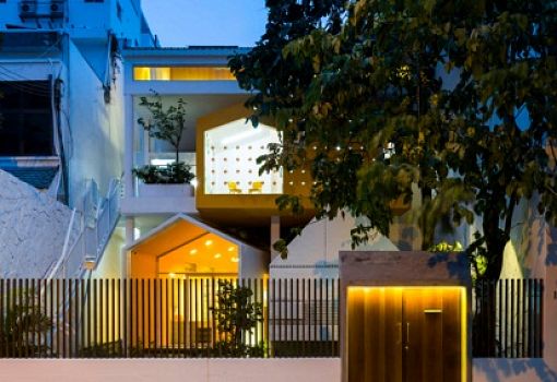 Архитекторы KIENTRUC O продемонстрировали своеобразие архитектуры Вьетнама, превратив таунхаус в частный детский сад. Здание имеет большую площадь остекления и интерактивные пространства. В композиционном отношении объект состоит из нескольких контрастирующих объемов, напоминающих детские кубики. Яркие цвета и перфорированные поверхности присутствуют и в интерьере детсада. Площадь здания 265 кв.м.