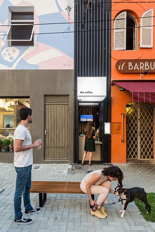 Площадь помещения составляет 3,95 кв. м. Раньше здесь был склад соседнего ресторана, но потом администрация заведения решила отказаться от этой функции и сдать четыре «квадрата» в аренду. В процессе обустройства кафе, где кофе в основном продают «на вынос», архитекторы вдохновлялись лучшими образцами японского минимализма. Главный вопрос, который встал перед ними, - как визуально выделить на фасаде новое заведение? Проектировщики приняли решение обозначить его вертикальными линиями, цветом и рекламной светящейся конструкцией из акрила. В интерьере внешний вид фасада поддерживается теми же металлическими вертикальными рейками и деревянной отделкой, а также черными фаянсовыми плитками, которыми часто облицовывают стены в вестибюлях бразильского метро. Таким образом и кафе, и бариста и клиенты стали частью городской атмосферы и повседневной жизни мегаполиса, а само заведение – интерактивным общественным пространством.