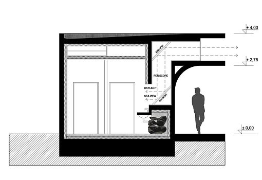 В основе дизайнерской концепции Верцинского лежит принцип перископа. Дело в том, что местная администрация планирует построить латрину в пешеходной зоне, простирающейся вдоль морского побережья. Архитектор справедливо посчитал: нельзя пренебрегать красивыми видами, даже если они открываются из окна столь специфического в функциональном отношении сооружения. А как добиться «красивой картинки», если туалет по проекту должен быть одноэтажным? Так и пришла идея перископа.