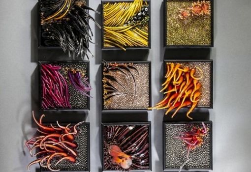 Американская мультимедийная художница Шайна Лейб (Shayna Leib) работает с различными материалами, но чаще всего предпочитает стекло из-за «его способности заморозить движение во времени». Шайна использует поток горячего стекла, заставляя его застывать в форме схваченного динамического порыва, управляя оптическими эффектами для выражения своего художественного видения.Срастная поклонница дайвинга, она говорит: «Океан для меня это источник вдохновения и мистицизма, а одна из моих жизненных целей - нырять во всех морях мира». Для реализации проекта Лейб выдувала километры стеклянных трубочек, которые затем разрезала на сегменты. Десятки тысяч трубочек разного цвета, длины и формы затем были собраны в хроматические инсталляции, позволившие художнице передать зрителю свой взгляд философа на столь привычные для нас природные явления, как ветер и вода.