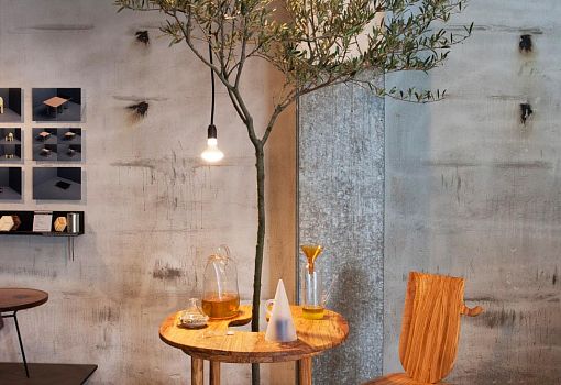 Одним из самых знаковых и привлекших всеобщее внимание экспонатов выставки была работа Антонио Арико (Antonio Aricò) Taste of Wood («Вкус дерева») –  оригинальная столовая группа, пленяющая редкой возможностью регулярно обедать по сенью живой оливы.  Это своего рода оммаж оливковому дереву: стол, стул  и кадка выполнены из его древесины с красивым природным жилковатым рисунком, а оливковым маслом предлагается воспользоваться для финишной обработки изделий.