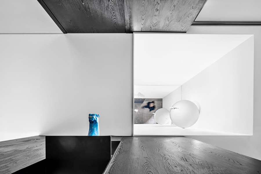 Кроме бара на нижнем уровне есть кухня, кафетерий и две сигарные комнаты. В глубине помещения находится белая лестница, ведущая на второй этаж. Эта зона украшена скульптурами известного китайского художника Ян Тао, а также другими причудливыми объектами, в числе которых, например, скелет тираннозавра в миниатюре. На втором этаже запроектирована библиотека, конференц-зал и чайная комната. Прямоугольный фрагмент межэтажного перекрытия архитекторы заменили на прозрачный декоративный пруд с рыбками.