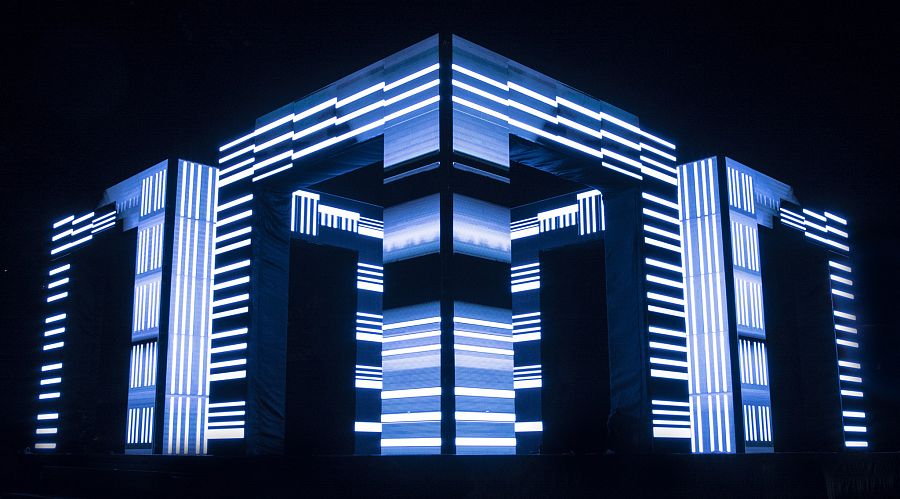 Бюро Кита Вебстера из Мельбурна представило публике светоинсталляцию Axiom - этакую матрицу из 700 000 светодиодов. Инсталляция состоит из трех арочных порталов, покрытых блоками светодиодов.