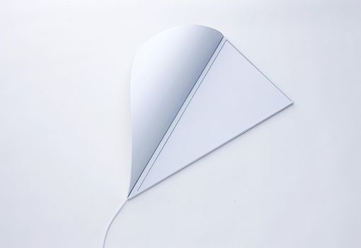 Peel – настенный светильник, который выглядит как внешний свет, пробивающийся сквозь отогнувшийся край настенного покрытия. Крепится к стене при помощи крючка, а провод неприметно выводится в углу по стыку стен. В качестве источника света использован органический светодиод. Размеры: 43х33,5х6.3см.