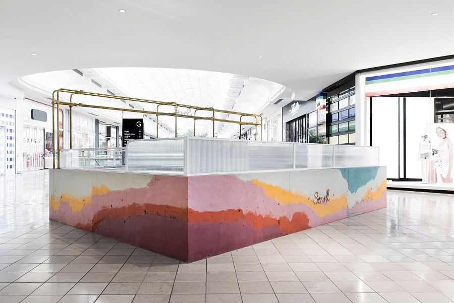 В основе концепции массивной стойки лежит образ емкости с несколькими слоями мороженого и разнообразных добавок. Технически замысел был реализован при помощи техники многослойной заливки тонированного бетона. Логотип магазина мороженого был закреплен на каркасе из медных трубок, символизирующих систему охлаждения в автоматах по производству популярного ледяного лакомства.