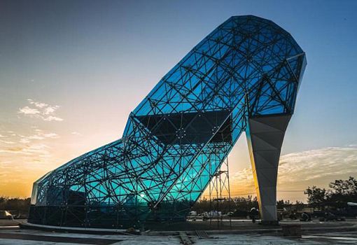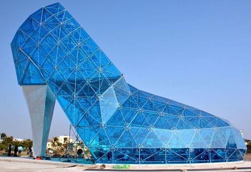 В Тайване появилось необычное здание в виде огромной хрустальной туфельки. Построили его для того, чтобы привлечь туристов на побережье. Высота стеклянного сооружения 16 метров, на его возведение ушло 320 элементов из цветного закалённого стекла. Бюджет проекта составил около 686 тыс. долларов США.