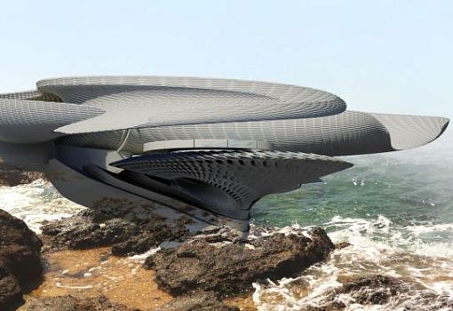 Оригинальную концепцию жилого здания предложила дизайнер из Великобритании Марго Красоевич (Мargot Krasojević) для заказчика из Кейптауна (ЮАР). Дом, своими очертаниями напоминающий корабль для межпланетных путешествий, будет построен на берегу океана, у самой кромки воды, где часто бывают достаточно высокие волны. В центральной части строения запроектирована гидротурбина, которая будет вырабатывать электроэнергию за счет силы волн и энергии приливов и отливов.
