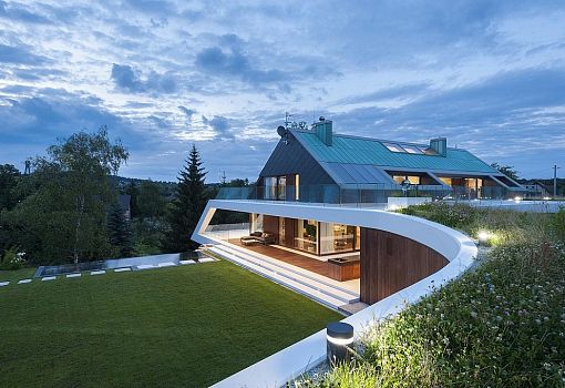 … - так можно перевести название творения Mobius Architects. Дом расположен в Кракове (Польша) и представляет собой сочетание вертикальных и наклонных плоскостей и многогранных объемов. Трехуровневое здание общей площадью 860 кв. м снабжено несколькими террасами.