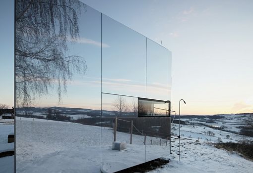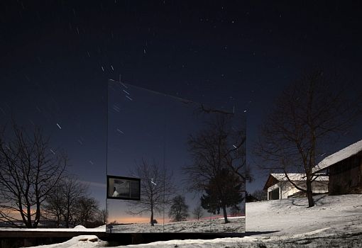 Австрийская студия Delugan Meissl Associated Architects разработала проект сборного дома Casa invisible. Такое название строение получило благодаря зеркальному фасаду, отражающему окружающую природу. Выглядит это так, как будто никакого сооружения попросту нет. Но зеркальной оставлена лишь внешняя отделка, сам же дом собран из деревянных элементов, его можно использовать где угодно. Размеры здания довольно скромные: пространство шириной 3,5 метра и длиной 14,5 метра делится на три функциональных зоны. Проект предусматривает высокую степень пространственной гибкости. Интерьеры Casa invisible выполнены из дерева светлых тонов и наполнены белой мебелью, в доме имеется даже небольшой камин, а остекление от пола до потолка открывает потрясающий вид на окрестности. Небольшие габариты и легкость сборной конструкции серьезно облегчают транспортировку. Другим преимуществом продукта является его относительно низкая стоимость.