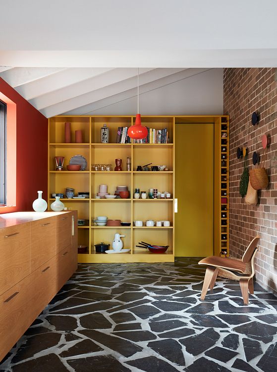 Проект получил название Polychrome House. Заказчик, ценитель искусства, настоял на том, чтобы произведения искусства стали частью обновленного внутреннего пространства дома. Таким образом, яркие цвета и присутствие картин и скульптур обеспечивают «сильную энергетику» интерьера.