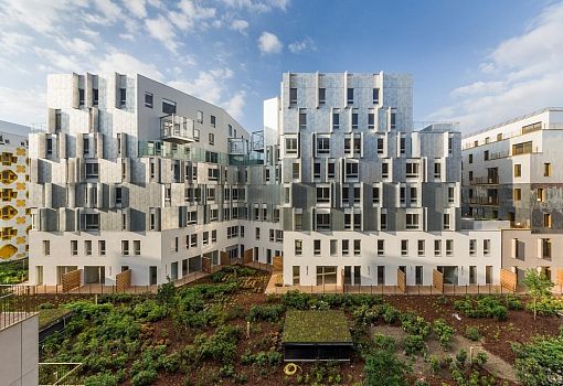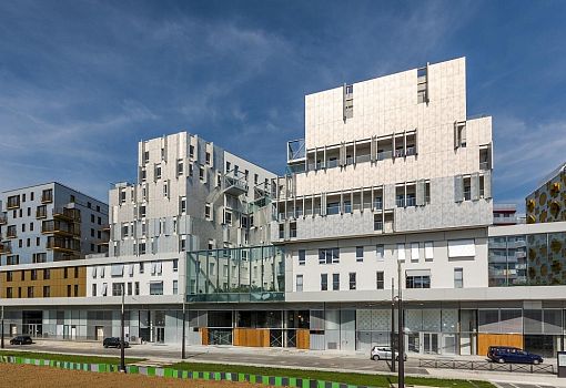Склады, расположенные в северо-восточной части Парижа, в рамках реконструкции района стали жилым комплексом S2. Сооружение, созданное бюро Brenac & Gonzalez смело можно назвать трансформером, и все благодаря алюминиевым экранам, которые покрывают большую часть площади фасадов. В дизайне перфорированных панелей прослеживаются элементы ар-нуво; экраны легко складываются, увеличивая освещенность частных пространств, а так же одновременно меняя облик многоквартирного дома.