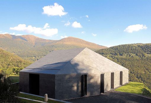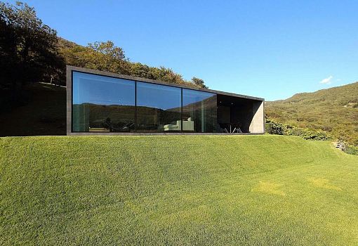 Вилла Монтебар – это деревянный дом, находящийся в швейцарских Альпах на открытой возвышенности. Выполнено здание в виде единого объема из дерева – минималистской темно-серой конструкции. Выделяются только окна и часть фасада с панорамным остеклением. Такие решения, как естественная вентиляция, которой удалось добиться благодаря правильному расположению дома в пространстве, повышают уровень энергосбережения. Общая площадь 200 кв.м. Реализовали проект архитекторы бюро JM Architecture.
