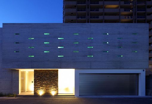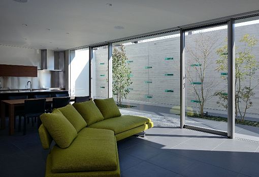 Оригинальный подход к охране частной жизни продемонстрировал архитектор Масахико Савамура (Masahiko Sawamura), реализовав проект Kaleidoscope Ⅴв Японии. Дом выделяется монолитной стеной, которая ограничивает внутренний двор. Непрерывность этого элемента подчеркнута интегрированными источниками света в форме вытянутых окошек. Возникает ощущение пространственной связи с внешним миром. Строгая минималистская стилистика также обыграна в интерьере; она слегка смягчена присутствием растительности.