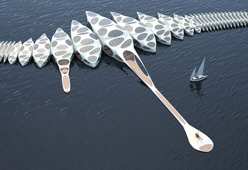 Концептуальный проект архитектора Джанлуки Сантосуоссо (Gianluca Santosuosso) исследует идею самодостаточного отеля с возможностью адаптации к любым погодным условиям. В основе структуры MORPHotel – подобие позвоночника живого существа. В целом отель будет представлять собой огромные плавающие капсулы разных размеров, нанизанные на одну подвижную ось длиной более километра. Как предполагается, отель будет дрейфовать по воле океанских и морских течений, приплывая то в один, то в другой город. Понятно, что скорость передвижения плавучего отеля будет куда меньшей, чем скорость судов, однако его идея вовсе не в быстроте, а в непрерывном путешествии. Планируется, что MORPHotel будет создан с использованием современных устойчивых технологий: интегрированных солнечных панелей, системы сбора дождевой воды, плавучих теплиц и так далее.