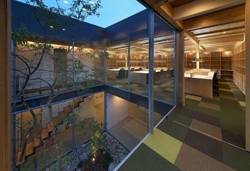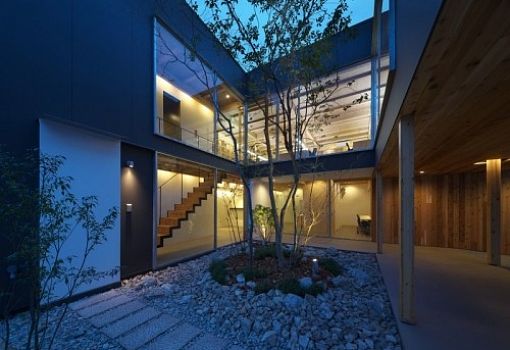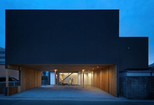 Двухэтажный дом, созданный бюро Tsubasa Iwahashi Architects, расположен в Химэдзи (Япония). Особенность здания в том, что второй этаж решен в виде массивной консоли, нависающей над входной зоной. Сквозь этот проем хорошо просматривается внутренний дворик, который является центром композиции этого современного дома.