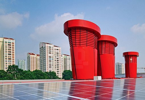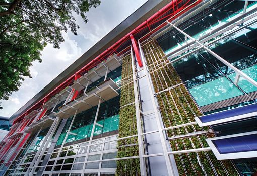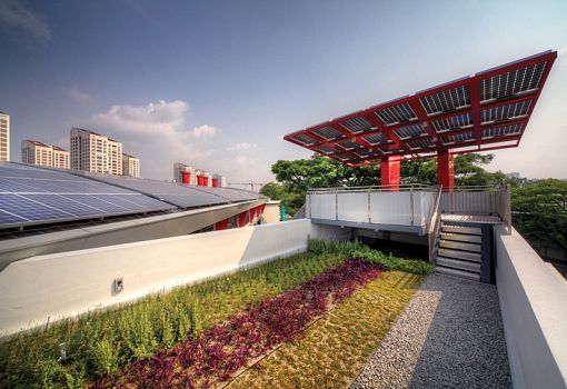Экологически устойчивое проектирование сегодня имеет большие перспективы. Поставив перед собой сложнейшую цель – создание здания «нулевой энергии», специалисты DP architects сумели достичь ее. Здание Строительной академии в Сингапуре полностью соответствует современным экологическим требованиям и демонстрирует возможность создания архитектурных проектов с минимальной зависимостью от ограниченных энергоресурсов. Система управления зданием функционирует как активный инструмент обратной связи и мониторинга в режиме реального времени, обрабатывая непрерывные потоки данных, поддерживая заданные параметры и минимизируя энергопотребление. Зеркальные воздуховоды, солнечные батареи, озелененная крыша и стены – это  далеко не полный список экологических преимуществ проекта. Здание само вырабатывает ежемесячно столько электроэнергии, что ее хватило бы на нужды 52 частных домов.