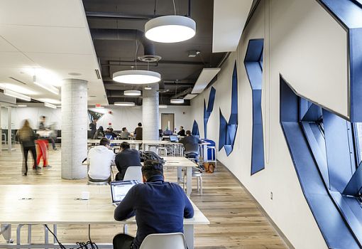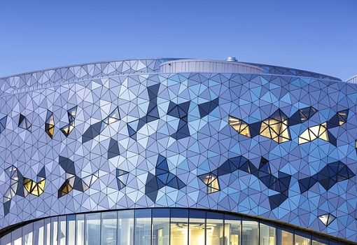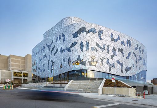 Инновационный подход к подготовке нового поколения инженеров демонстрирует Бержерон –центр Йоркского университета, построенный по проекту бюро ZAS Architects. Сооружение объединяет и рационализирует пространства, которые принято было разделять на аудитории, таким образом предполагается расширить возможности студентов в области обучения. Интересен фасад здания, который выполнен в виде волнистого пиксельного облака с экраном, собранным из отдельных треугольных элементов. Часть из них прозрачна, другие демонстрируют цветовой градиент. Расположено сооружение в Торонто (Канада).