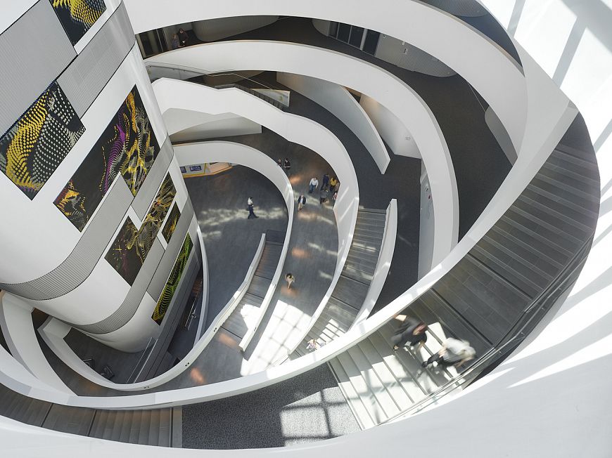коммуникацию между всеми зонами штаб-квартиры. Архитектура здания и дизайн интерьера символизируют мобильность, движение. Именно так, по мнению авторов, должен выглядеть офис современной корпорации.