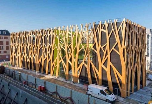 Для органичной интеграции своего проекта в живописные ландшафты Шавиля (Франция) сотрудники бюро Laraqui Bringer Architecture решили стилистически объединить экстерьер и интерьер сооружения. Их многофункциональные пространства буквально пропитаны природной тематикой: ограждение фасада выполнено из фигурных панелей, стилизованных под деревья, а в ярких внутренних пространствах растут небольшие живые деревца.