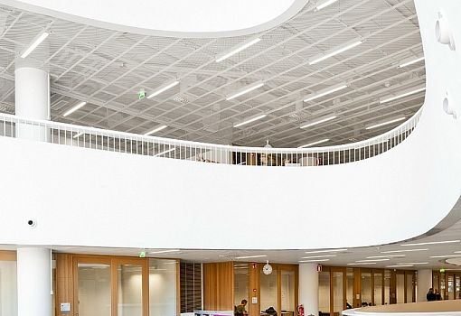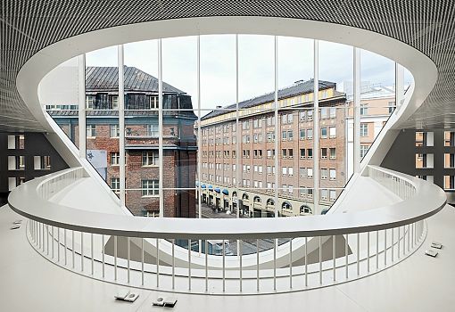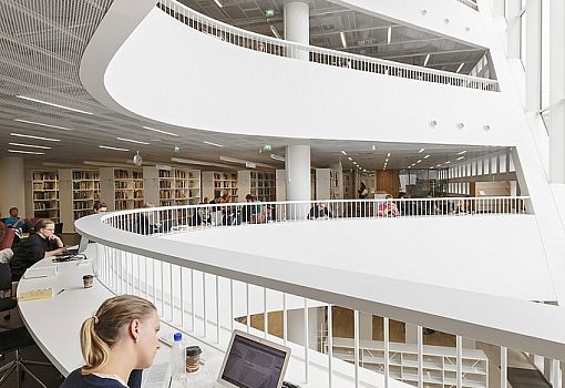 Главная библиотека Хельсинского университета является крупнейшей академической библиотекой в Финляндии. Она расположена в историческом центре города, на месте бывшего торгового центра. Проект здания разработан архитектурной студией Anttinen Oiva, победившей в конкурсе. Современное семиэтажное строение гармонично вписалось в архитектурное окружение, и привлекает внимание плавными линиями кирпичного фасада с густой оконной сеткой и крупными арочными проемами. Благодаря кровельным люкам центральный холл и другие помещения библиотеки наполнены солнечным светом. Внутреннее пространство поделено на функциональные зоны, среди которых выделяются читальные и информационные залы, а также отдельные помещения с высокой степенью звукоизоляции. С балкона на верхнем уровне открывается захватывающий вид на городские крыши. Основные этажи здания соединяются с помощью винтовой лестницы, кроме того, в библиотеке имеется лифт. Библиотека Хельсинского университета стала одним из четырех проектов, попавших в шорт-лист национальной архитектурной премии Финляндии.