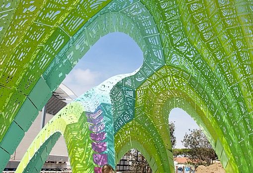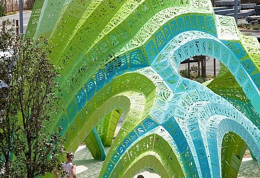 Рядом с христианским лицеем Bourquin в Аржеле-сюр-Мер (Франция) студия дизайна Марка Форнеса THEVERYMANY построила оригинальный гофрированный амфитеатр Pleated Inflation.