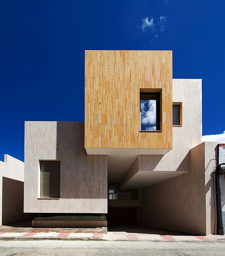 Архитекторы бюро OOIIO построили в Испании частный жилой дом R. В основе архитектурной концепции лежит образ горных кристаллов. Структура из нескольких объединенных консольных объемов выделяется на фоне окружающих строений, а неординарный вид здания подчеркивается контрастом фасадов из бетона и дерева.