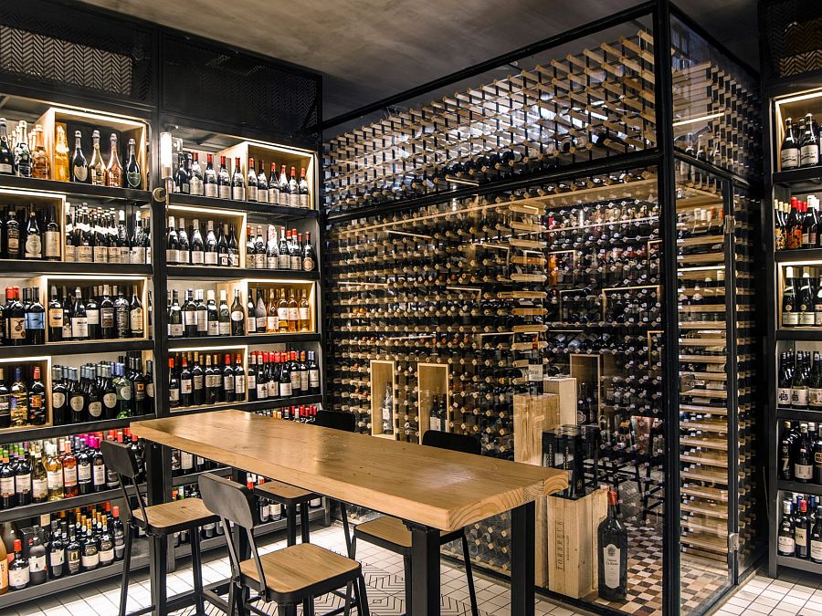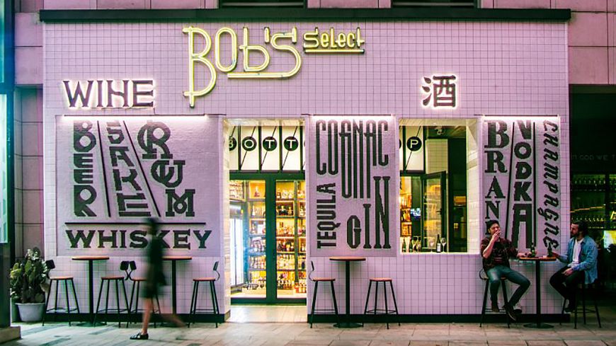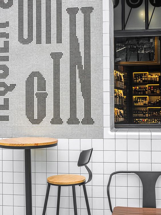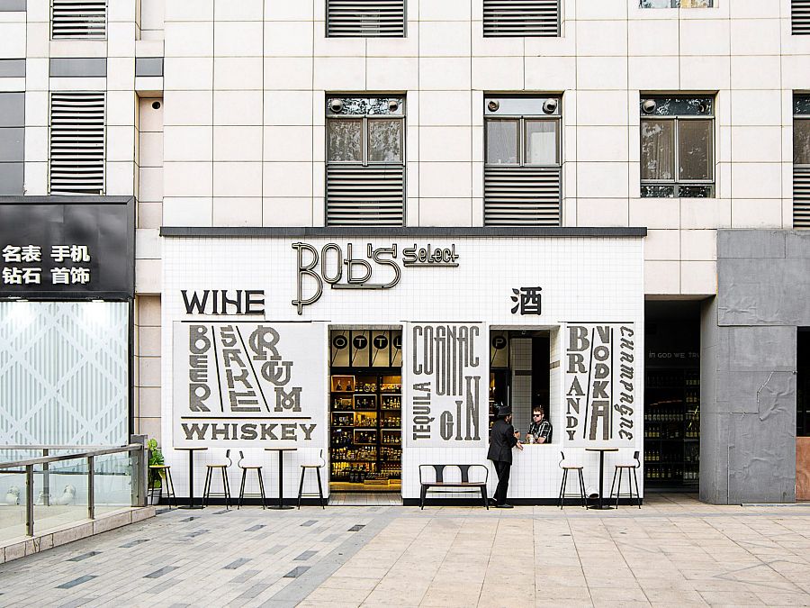 Архитектурная студия Designreserve спроектировала для оживленного района Пекина бар и винный магазин под одной крышей с использованием графики и шрифтов в качестве декора. «Мы хотели создать заведение с мощной визуальной идентичностью, – рассказывают авторы, – поэтому пригласили графического дизайнера.