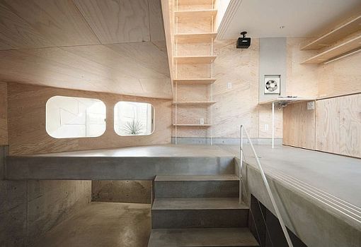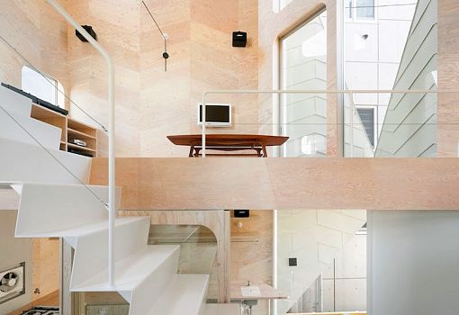 Небольшое двухэтажное здание Tsubomi House вмещает в себя жилище и маленькую домашнюю пекарню. Снаружи многогранный объем, спроектированный японским бюро Flathouse, обшит оцинкованными листами металла, состыкованными в виде елочки. Для внутренней отделки использованы фанерные панели из лиственницы. Площадь застройки всего 26 квадратных метров, при этом на первом этаже находится магазин. Дружественность и теплота пространства, обусловленная мягкой природной цветовой палитрой, современный стиль интерьера в сочетании с конструктивистской асимметрией фасада делают домик привлекательным не только для жителей, но и потенциальных клиентов.