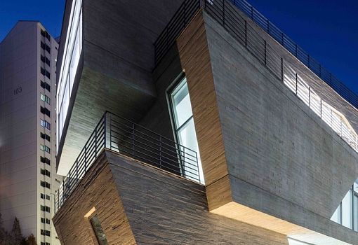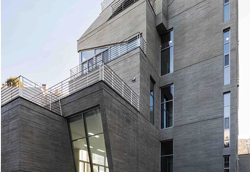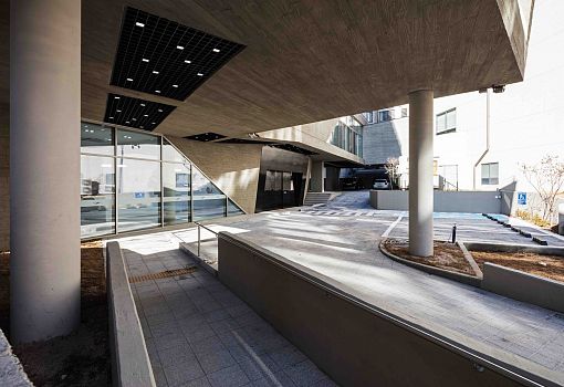 Архитекторы бюро D Werker Architects завершили проект офисного здания в Мапо – историческом районе Сеула. Перед авторами стояла задача – добиться узнаваемости здания и того, чтобы оно ассоциировалось с брендом компании-заказчика, крупной и стремительно растущей косметической фирмы. Тут же возникли сложности. Во-первых, участок под застройку имел сложные очертания. Во-вторых, в соответствии с местными строительными нормами здание можно было возвести только на определенной – не очень выгодной в смысле открывающегося вида – площадке. Исходя из всего этого, архитекторы решили придать зданию оригинальную форму. Каждый объем слегка сдвинут в горизонтальной плоскости, отчего возникает ощущение «недоделанности», «небрежности». Таким образом обеспечивается необходимый угол обзора из всех окон офиса.