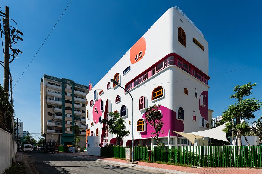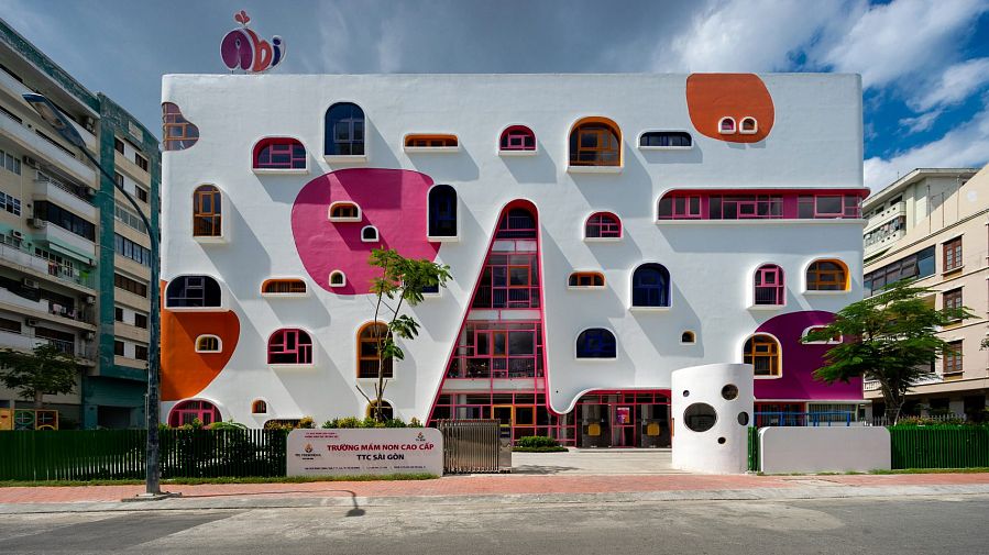 Здание TTC Elite Saigon Kindergarten насчитывает пять этажей. Три нижних этажа отведены под игровые комнаты и кабинеты для занятий. На двух верхних располагается администрация и педагогический коллектив. В центральной части объема построена главная лестница, соединяющая игровые зоны всех уровней. Проемы в конструкциях лестницы — еще один элемент интерактива, превращающий занятия в увлекательную игру. По словам авторов, они ставили перед собой задачу «разбудить ребенка внутри себя». Что и стало залогом успешной реализации проекта.
