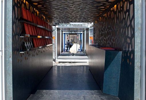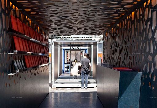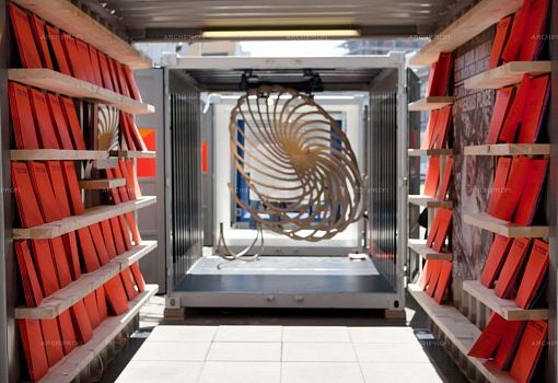Школа дизайна города Колдинг (Kolding School of Design, Дания) участвовала в Миланской неделе дизайна с инсталляцией Tube – своеобразным тоннелем, образованным составленными цепочкой металлическими контейнерами с раскрытыми торцами. Каждый контейнер выполнял функцию «витрины» для одного экспоната – объекта, созданного недавним выпускником Школы, в сотрудничестве с одной из известных знаковых датских марок (по производству обуви, мебели, ковров, насосов, детских конструкторов).