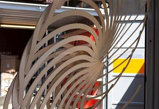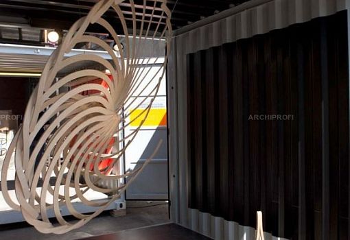 Луизе Фром (Louise From) спроектировала полигональный объект с двойным смыслом. С одной стороны эта массивная конструкция выглядит как гигантская символическая туфля на каблуке, с другой – это причудливое кресло-трон, на котором можно посидеть. Дизайнер использовала березовую фанеру и рояльные петли. Тобиас Тёстесен (Tobias Tøstesen) собрал из 7000 прозрачных деталей Лего впечатляющую ярусную люстру диаметром полтора метра. Микаэль Сване Кнап (Michael Svane Knap) и Кристиан Троэльс (Christian Troels) предъявили свой «модульный эксперимент» – гигантское колесо, составленное из множества одинаковых фанерных «загогулин» (а из пары таких модулей они соорудили детскую качалку). Лерке Эллегор (Lærke Ellegaard) оформила стены и потолок «головного» инфо-контейнера панелями из окрашенного ДСП с вырезанным лазером узором.
