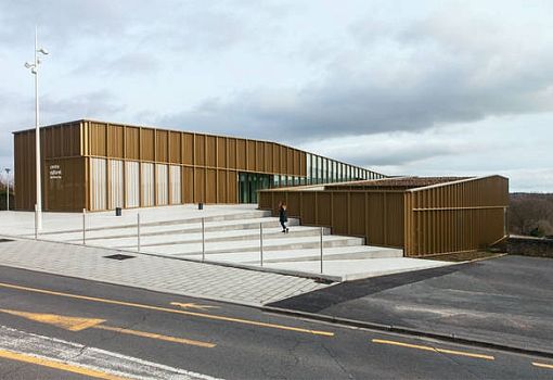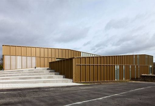 Прогулку по сельской местности с ее уникальной топографией предлагает своим посетителям новый культурный центр в Сен-Жермен-ле-Арпажон, городке близ Парижа, где всего 10 тысяч жителей. Гости центра отправляются в путешествие по зданию U-образной формы, и как бы мимоходом оказываются в различных помещениях. Через главный вход посетители сначала попадают в центральный холл. U-образный план не только создает новые перспективы, но допускает индивидуальную ориентацию отдельных комнат. В культурном центре нашлось место для музыкальной школы и школы танцев, в помещения которых можно попасть через отдельный вход по большой лестнице. Закрытое патио в конце «петли» становится логическим завершением интерьера U-образного здания.