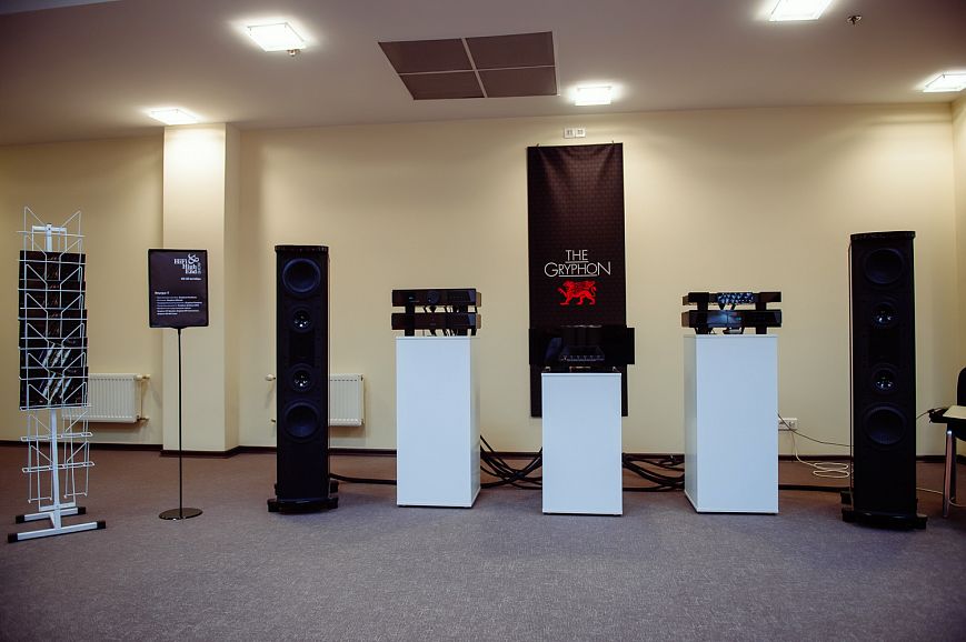 Компания продемонстрировала систему, собранную на компонентах Gryphon. Акустическая система Gryphon Pantheon пришла на смену младшим в линейке напольным системам Gryphon Atlantis. Новая трехполосная АС имеет частотный диапазон от 25 Гц до 40 кГц. 8-ми дюймовые басовые и 5-ти дюймовые среднечастотные драйверы с тройным магнитом изготовлены известным датским производителем ScanSpeak по спецификациям Gryphon. Ленточный высокочастотный драйвер разработан самой фирмой Gryphon.