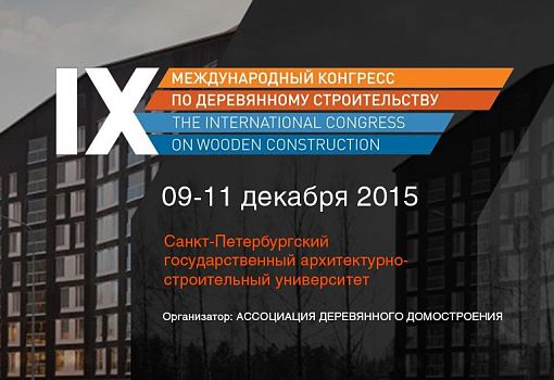 Приглашаем Вас к участию в IX Международном Конгрессе по деревянному строительству, который пройдет на базе Санкт-Петербургского государственного архитектурно-строительного университета с 9 по 11 декабря 2015 года. Основная тема этого года - «многоэтажное строительство из дерева». В рамках программы первого дня Конгресса при официальном партнерстве компании «Акзо Нобель» запланировано проведение Круглого стола «Многоквартирное и многоэтажное деревянное строительство: развитие, экономическая эффективность и существующие ограничения». Научно-практическая, архитектурная и сессия по маркетингу - все с участием лидеров отрасли. Конгресс по деревянному строительству – это 15 лет работы Ассоциации деревянного домостроения, антикризисный взгляд на развитие отрасли, лучшие бизнес-кейсы, первые лица компаний, зарубежный опыт, а также, коммуникации, продажи, жаркие дебаты и взгляд в будущее. 3 дня, которые делают год!