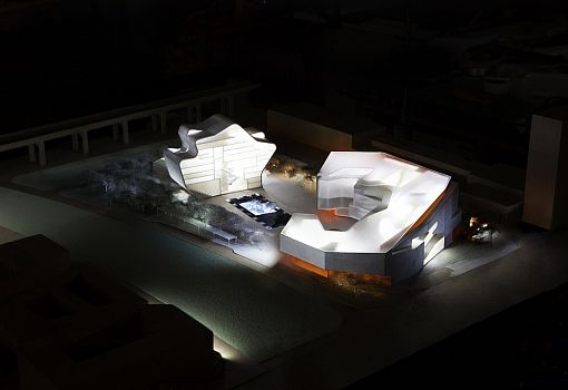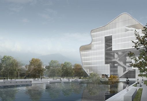Два абстрактных объема на рендерах – это проект художественного музея и библиотеки для Шэнчжэня (Китай). Сочетание сложных форм создает пространство внутреннего двора и нетривиальный образ проекта в целом. Общественный центр от бюро Steven Holl Architects благодаря использованию геотермального охлаждения, дождевой воды и фотогальванических элементов претендует на получение платинового сертификата LEED. Большая площадь остекления обеспечивает естественное освещение и визуально облегчает композицию.