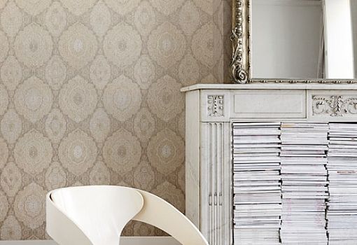 Роскошный цветочный узор выполнен серебряной или золотой фольгой и навевает воспоминания об интерьерах XVII века. Необычные волнистые 3D-линии и изящные полосы напоминают россыпи драгоценных камней. Отдельная тема – сложные дамаски в стиле барокко. Этот традиционный дизайн в коллекции Kharat обогащен современными эффектами: имитацией ковки с блестящими чернилами, мельчайшими кристаллами, эффектом кружева с контрастом цвета и вышивки стежками. Благородные дизайны дополнены изящными плейнами с тонким жемчужными узором и имитацией кожи, а также широкими полосами разных текстур.