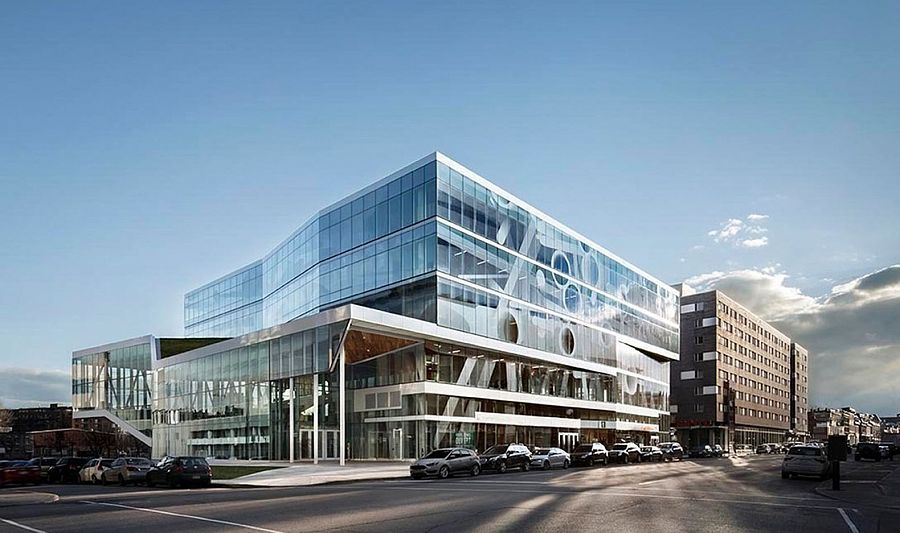 В форм-факторе гигантской ледяной глыбы выполнено многофункциональное здание школы Maison des etudiants de l’Ecole de technologie superieure (ETS). Сооружение демонстрирует новый взгляд на пространства для обучающихся – с большими открытыми площадями и встроенной мебелью. Благодаря минимизации энергопотребления и вредных выбросов здание должно получить «серебряный» сертификат LEED. Форма сооружения «облегчена» практически полным остеклением фасадов и интегрированной подсветкой, которая также усиливает сходство с айсбергом. Объект находится в Монреале (Канада) и реализован архитекторами Menkes Shooner Dagenais LeTourneux Architectes.