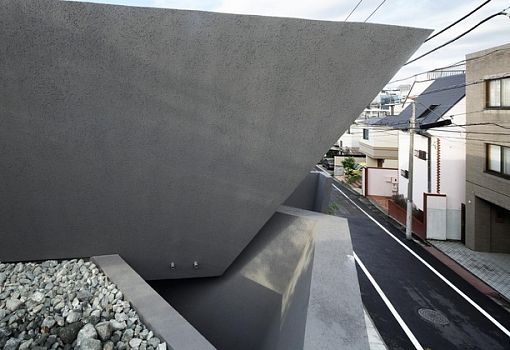 Одной из идей, реализованных в проекте бюро artechnic под названием SRK, является воплощение архитектуры, как части природы. Именно поэтому для минималистского дома была выбрана нетривиальная форма минималистского дома. Она характеризуется наклонными плоскостями, которые роднят здание со скалистым ландшафтом. Тесно связанный с окружающим пространством, дом в Токио стал удачным примером единения природы и рукотворных конструкций.