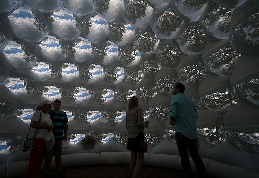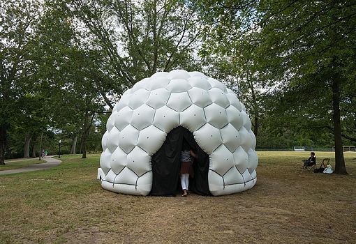 Создавая проект компаунд-камеры для развлечения посетителей парков, американское бюро Pneuhaus попыталось по-новому взглянуть на место «надувных» построек в современной архитектурной среде. Конструкция состоит из 109 надувных ячеек, которые снаружи обтянуты непрозрачной, а изнутри – прозрачной тканью. Таким образом получается оптический эффект: люди, находящиеся внутри, видят перевернутую «картинку» реальности. Специалисты говорят, что так или примерно так устроен фасетчатый глаз некоторых насекомых. Компаунд-камера открывает дверь в мир «незамутненной» визуальной информации и позволяет человеку взаимодействовать с ней, пусть и в игровой форме.