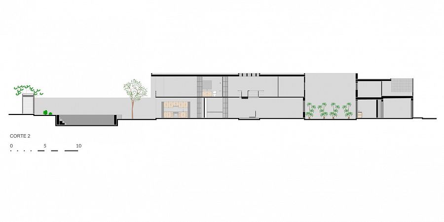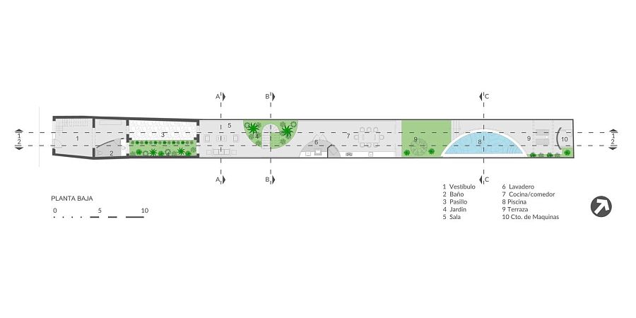 «Ширина пропорциональна длине в отношении 1 к 17, - вспоминает руководитель бюро Виктор Крус Домингес. – Но мы посчитали, что этот факт никак не помешает нам создать проект уникального инновационного дома с отличными пространственными характеристиками».