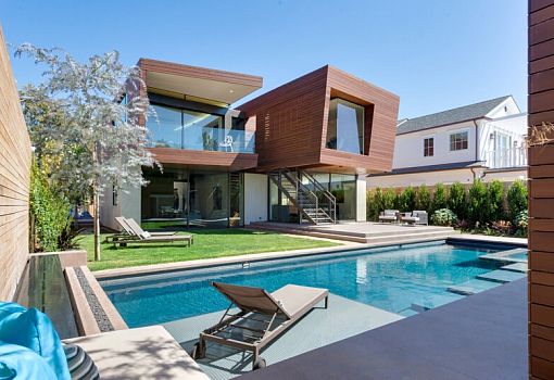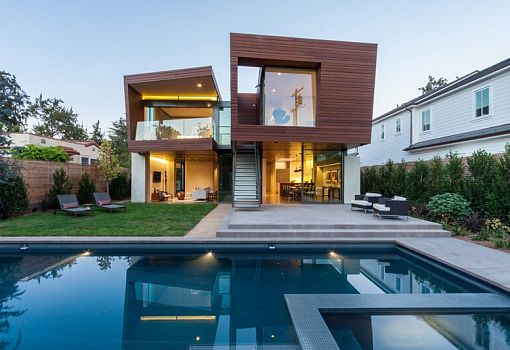 Особняк Split House (Калифорния, США) от архитекторов Kovac Design Studio оборудован по последнему слову техники. Деревянные консольные объемы второго этажа покоятся на контрастирующих бетонных основаниях первого. Динамика формы и универсальность дома проявляются в асимметричных балконах и открытых террасах. В интерьерах прослеживается та же стилистика – деревянный верх и серый бетонный низ. Экологичные и современные решения включают светодиодное освещение и фотогальванические элементы, интегрированные в кровлю.