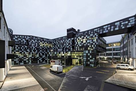 Городской бизнес-центр в Вене (Австрия) был реконструирован с целью увеличения площади, повышения функциональности и усиления общественной значимости объекта. Работа  бюро HOLODECK architects привлекает внимание пиксельной окраской фасада, которая создает динамичную игру света. Сочетание застекленных участков с «глухими» разнообразит возникающие визуальные ощущения.