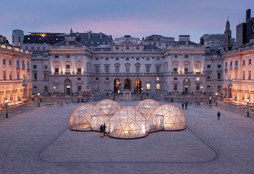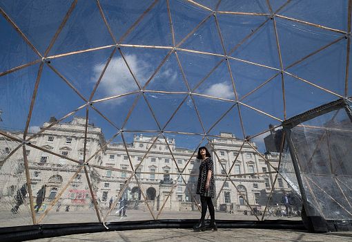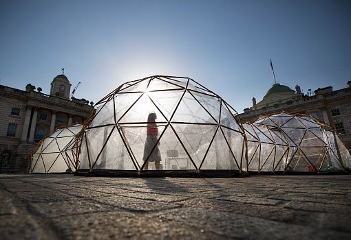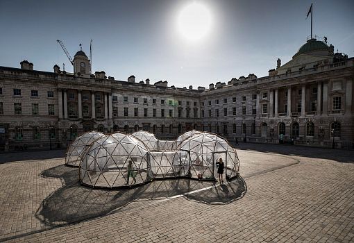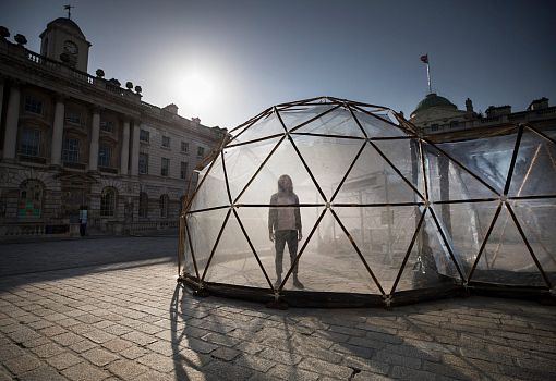 Во дворе музея Сомерсет-хаус британский художник Майкл Пински представил инсталляцию на злобу дня: пять пластиковых куполов-капсул, заполненных воздухом из крупных городов мира. Инсталляция приурочена ко Дню Земли и посвящена борьбе с загрязнением окружающей среды. Путешествие по капсулам начинается с воздуха острова Таутра (Норвегия), который считается самым чистым в мире. Первая капсула помогает максимально остро ощутить контраст с атмосферой в четырех следующих павильонах, которые наполнены воздухом из Лондона, Пекина, Нью-Дели и Сан-Паулу. Специальное оборудование позволяет точно воссоздать состав естественной и, увы, не самой чистой атмосферы перечисленных городов. Купола соединены друг с другом, и гости инсталляции могут ощутить, как с каждым отсеком растет степень загрязнения воздуха.