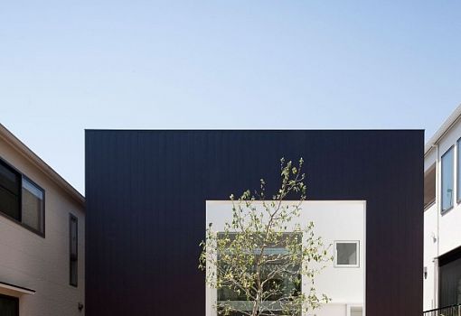 Черный фасад частного дома в Хиросиме (Япония), спроектированного бюро UID Architects, выглядит как рамка картины, на которой «изображено» здание и сад. Вернее, это даже не фасад, а только его часть, панель с проемом, отгораживающая дерево от улицы. К слову, это дерево «прорастает» сквозь межэтажное перекрытие, наполняя природным содержанием интерьер жилища.
