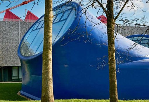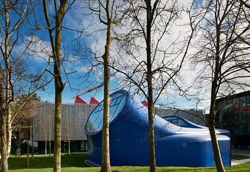 Под огромного кита стилизован новый объект бюро CRAB Studio. Это художественная студия. Оригинальная форма призвана вдохновить студентов на новые свершения и мотивировать для достижения творческих успехов. Студия для художников стала первым новым зданием Британского художественного колледжа Борнмут (Arts University Bournemouth), построенным за минувшие полвека. Конструкция выполнена из 17 стальных листов, выкрашенных в синий цвет и закрепленных на каркасе. Освещение преимущественно естественное, организованное благодаря большим зенитным окнам и остекленному входу.