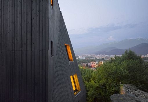 Дом, созданный архитектором Одиль Декк на юго-востоке Франции, – настоящая идиллия для художников. Он действует на умы и как черный квадрат Казимира Малевича, и как художественно переосмысленный кубик Рубика. Жить в резиденции будут современные художники. «Искусство и архитектура взаимно обогащают друг друга, они на равных. Я надеюсь, что мне удалось создать пространство, где художники могут обрести творческую свободу», - говорит архитектор. – «Я создаю места, которые погружают в свою историю, и их посетители оставляют свои проблемы снаружи». Черная деревянная оболочка придает зданию вид неприступного замка. Высокие деревья загораживали чудесный вид на долину Гренобля, что находится внизу. Именно поэтому единственно верным архитектурным решением стала высокая жилая башня. Винтовая лестница соединяет художественную студию на первом уровне со спальнями и гостиной наверху, где обитатели могут «зарядить» свои энергетические «батареи» для дальнейшего творчества. Солнечный свет проникает в здание сквозь окна разных размеров. Днем они открыты, а на ночь закрываются, делая «черный монолит» еще более загадочным и неприступным.
