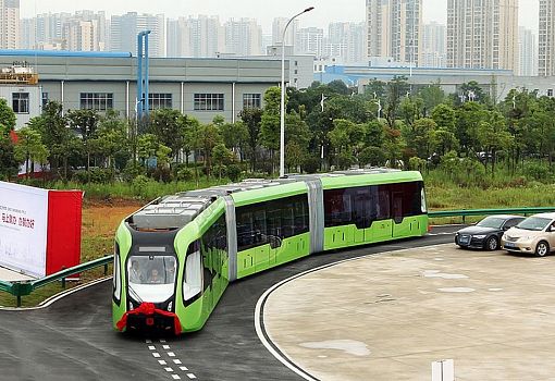 В китайском городе Чжучжоу прошли испытания новой системы пассажирского транспорта ART (автономный скоростной транспорт). Это трамваи, которые не нуждаются в рельсах, проводах и…водителе. Благодаря специальным сенсорам трамвай движется на резиновых колесах по белой разметке и развивает скорость до 70 км/ч. Работает такой транспорт на электричестве, заряда батареи хватает на 40 минут пути. По замыслу дизайнеров и конструкторов, система ART позволит решить транспортные проблемы малых городов (правда, в самом Чжучжоу живет больше 3 млн. человек), не имеющих бюджетных средств для прокладки железнодорожных путей и силовых линий.
